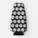 White Daisy Floral Pattern on Black Bottle Cooler