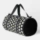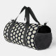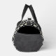 Travel or head on down to the gym in style with this small duffle bag that features an image of a white Daisy flower printed in a repeating pattern on a black background along with solid, black trim on side ends of bag. A fun, floral design!