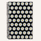 Spiral bound notebook that features the photo image of pretty, white Daisy flower on a black background and printed in a repeating pattern. A fun, floral design! Perfect for use as a journal or for keeping notes. Select your notebook style and wire colour.