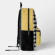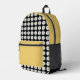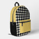 Travel with this stylish and trendy backpack that features the image of a white Daisy flower with yellow centre on a black background and printed in a tiled pattern on front side only. A fun, floral design! Top and zippered pouch of backpack are a solid yellow colour. Sides and back are black. You may customise your backpack colours as desired.