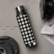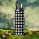 White Daisy Floral Pattern on Black Water Bottle