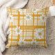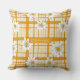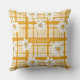 Bright and cheerful pattern throw pillow featuring white, stylised daisy-like flowers with sunny yellow centres over a warm yellow and off-white gingham backdrop. Perfect for retro, cottagecore, and spring-inspired designs, this fresh and playful floral print brings a touch of sunny charm to any setting.