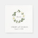 Elegant floral wedding napkin with a simple layout featuring your monogram inside of a watercolor painted wreath with white daisies. Below are your names and wedding date. This modern wedding napkin with daisy flowers is great for a spring or summer wedding.