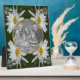 Pretty white daisy flower with lingering raindrops abstract frame created from my original photo. Flower photography by Susan.