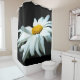 White daisy flower against dark background. Flower head with white petals and yellow disc. The flower is tilted under the blast of summer wind. Painting from a photography. Shower curtain to decorate your bathroom for fun and good mood