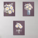 White Daisy Flowers Monogram Dark Purple Set of 3