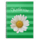 White Daisy Green Striped Custom Name Notebook