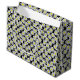 A gift bag with white daisies on a black background. You can choose the background colour of your preference.