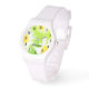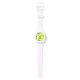 A pretty floral watch with a watercolor painting background showing a white daisy against a grass green background. The watch can be personalised with the owners name.