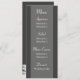 This custom wedding reception menu is a must if you plan on serving dinner at your reception. We also offer this wedding menu in a wider version. Featuring a white daisy on a dark grey background, this wedding dinner menu coordinates with the wedding favour labels, table place cards and other fine products in our White Daisy Wedding Collection - Grey to help you plan your perfect wedding.