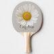 White Daisy with Custom Name Grey Ping Pong Paddle