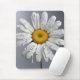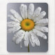 Close-up of a white daisy with dripping raindrops on a soft gradient grey background