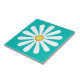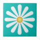 White daisy, yellow centre, on cyan tile