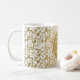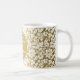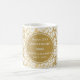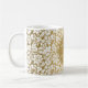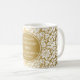 The elegant white floral damask pattern over a gold background and gold circle with a white swirls