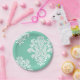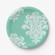 A beautifully feminine design in white damask over an aqua background. This plate is a great choice for bridal showers, birthday parties, weddings and other events. Matching paper napkins, wrapping paper, invitations and gift bags are available in this design for a lovely coordinated look at your special event.