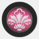 White Damask Pink Shimmer Black Border Classic Round Sticker