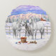 White Dapple Grey Quarter Horses On A Farm In Snow Round Cushion