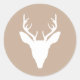 White Deer Head Silhouette On Beige Classic Round Sticker