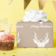 Destei's original white silhouette design of a deer head with large antlers on a beige background colour. There is also a personalizable text area that now reads: "Merry Christmas".
