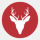 Destei's original white silhouette design of a deer head with large antlers on a red background colour.