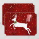 Elegant flat style Christmas greeting card done in a deep red, with scattered gold stars, on the background. A white silhouette of a deer, with a festive holly wreath, around it's neck, decorates the middle of the card. Personalise the white text to read what you want. Lovely way to send your greetings this holiday season.