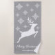 White Deer Shape On Grey With Snowflakes & Text Beach Towel