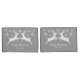 Destei's original silhouette design of two deer facing each other together with some decorative snowflakes. The background colour is grey. There are also two personalizable text areas.