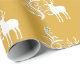 This white buck stands beside a stylised holiday tree for an elegant overall pattern in gold and white with green accents.