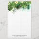 Modern and cute white delicate flowers and green exotic leaves. Optional monogram