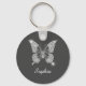 White Diamond Butterfly, DIY Name, Dark Grey Key Ring