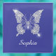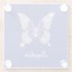 White Diamond Butterfly, Script Name, Deep Blue Glass Coaster