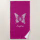 White Diamond Butterfly, Script Name, Deep Fuchsia Beach Towel