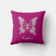 White Diamond Butterfly, Script Name, Deep Fuchsia Cushion