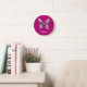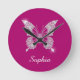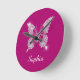 White Diamond Butterfly, Script Name, Deep Fuchsia Round Clock