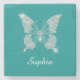 White Diamond Butterfly, Script Name, Deep Teal Stone Coaster