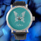 White Diamond Butterfly, Script Name, Deep Teal Watch
