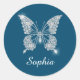 White Diamond Butterfly, Script Name, Ocean Blue Classic Round Sticker