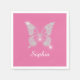 A classy white diamond butterfly design to personalize name in white script text on pink background.