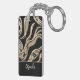 White diamonds, gold border abstract shapes key ring