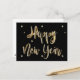 Happy New Year Typography Elegant Black and Gold, Faux Gold Foil Text with White Diamonds Look and Snow and Stars, Modern Script, Chic New Year's Card