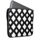 A bold, geometric pattern of large and small white diamonds on a black background. The black forms a lattice which separates the diamond shapes.