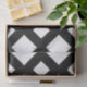 A bold, geometric pattern of large and small white diamonds on a black background. The black forms a lattice which separates the diamond shapes.