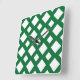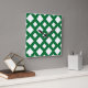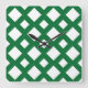 A bold, geometric pattern of large and small white diamonds on a green background. The green forms a lattice which separates the diamond shapes.