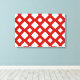 A bold, geometric pattern of large and small white diamonds on a red background. The red forms a lattice which separates the diamond shapes.