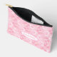 Cute pretty floral pouch style bag. Original white dianthus carnations patterned bag on a pretty pink background. Customise with the short name of your choice. Example reads Leanne. This pattern is stylised from a photo of a piece of jewelery I made from modelling clay. This original pattern is designed by Sarah Trett for www.mylittleeden.com