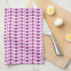 White Dog Bone Herringbone Pattern Dark Magenta Tea Towel
