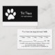 White Dog Paw on black Pet Grooming Service Appointment Card