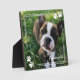 Square photo plaque with your dog photos inside a sketched frame in white with paw prints. Dog photo plaque personalised with your puppy's name.