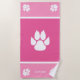 Cute design for dog lovers and dog owners featuring Destei's white dog paw print silhouettes on a pink background colour. There is also a personalizable text area for a name whether you wish it to read your name or your pet's name, for example. The middle has a large white dog paw print shape while each corner has a smaller paw print on it.
