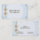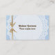White doily with lace and blue coloured burlap business card template design that features a white round doily with lace on light blue burlap with ribbon and bow in beige with metallic effect and a white jewel. Text in brown. Note that lace, burlap, flower and jewel are all “printed on” and not real fabric, metal, gem or crystal. This elegant, sophisticated and romantic design with a rustic essence is fully customisable and is perfect for personal or professional use.